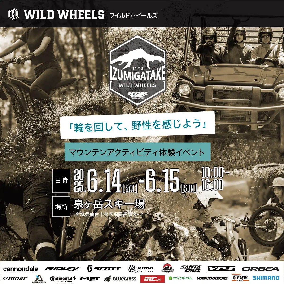 オートバイ・自転車を販売および修理する「ハヤサカサイクル」を運営する株式会社早坂サイクル商会(本社:宮城県仙台市、代表取締役:早坂 武)は宮城県仙台市泉区の泉ヶ岳スキー場にて、マウンテンアクティビティを体感できるサイクル&モビリティ イベント「WILD WHEELS in 泉ヶ岳スキー場」を2025年6月14日(土)、15日(日)に開催する。
