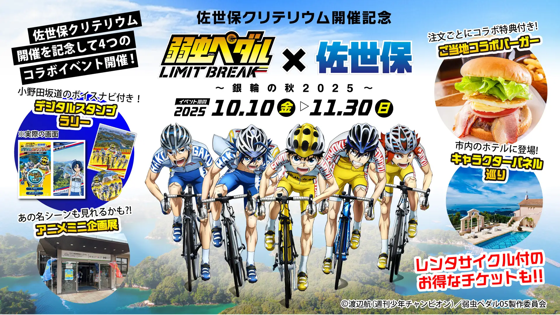 2025年10月10日(金)開催の「佐世保クリテリウム」を記念して、人気アニメ「弱虫ペダル LIMIT BREAK」とのさまざまなコラボイベントを佐世保市内の各所で展開!