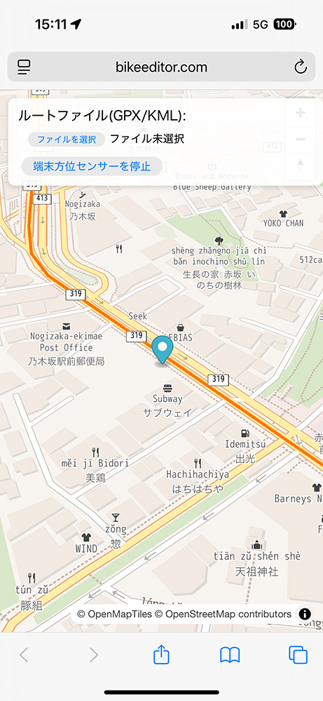 スマホの画面にルート情報(GPX/KML対応)を表示し、リアルタイムに自分の位置に追随するマーカーを表示します。