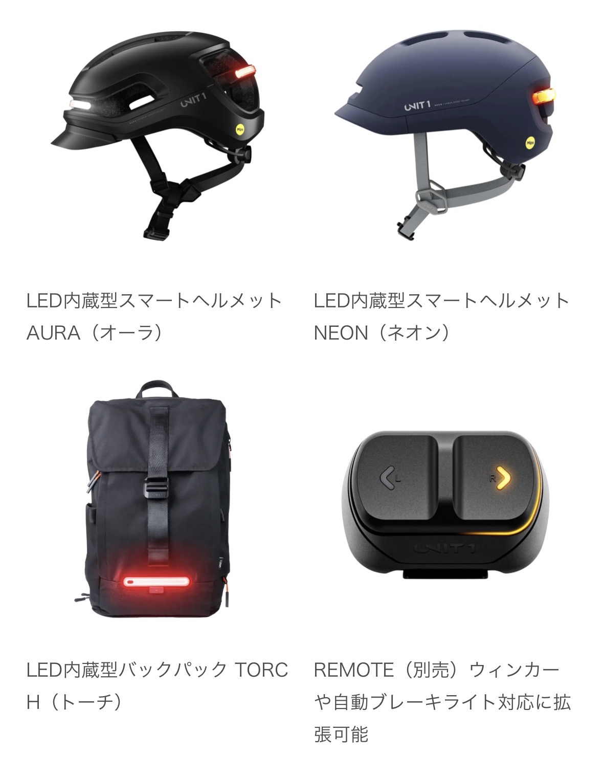 UNIT 1製品はこの課題に対し、「ウィンカー」「自動ブレーキライト」「広範囲を照らすLED」をヘルメットと統合することで、日中・夜間を問わず、安全な体験を提供します。