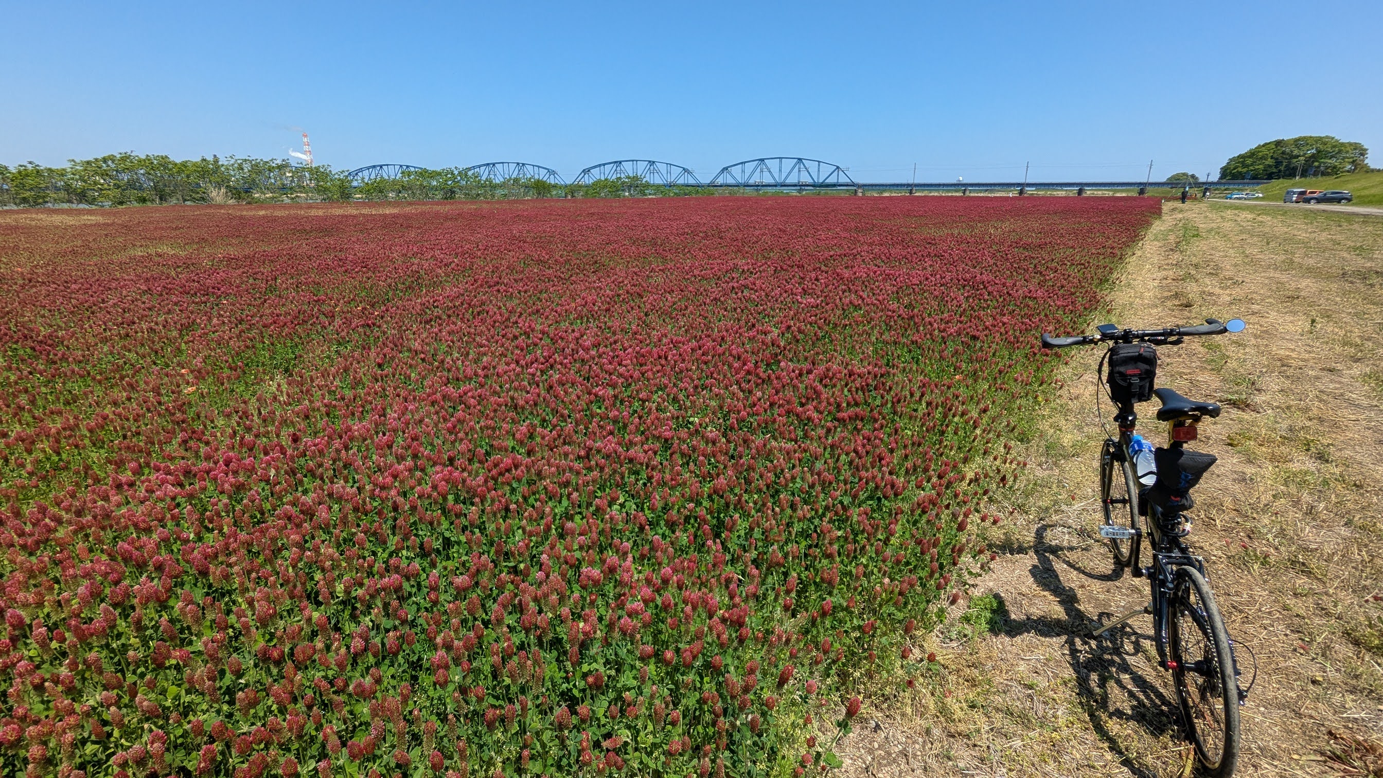 Xでもおおくま花畑のクリムゾンクローバーが凄いと、写真付きで投稿が上がってますが、一面真っ赤ですね;;