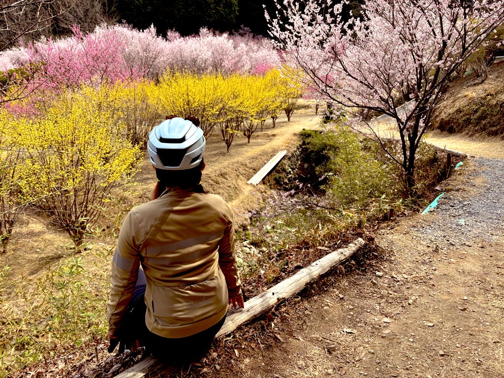 元棚田だった所に花桃や山桜などが植えられて、燃えるように咲き誇ってますね!